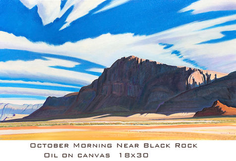 The paintings were made on Autumn trips to the Western Great Basin, the Gaviota Coast and Point Reyes in Northern California. Some reflect a growing interest in volcanic formations, and a search for the arhythmic poetry of lava flows in particular. The painter finds a correlation between the exposed ocean terraces and uplifts of Pt Conception and the equally abrupt and expansive sagebrush sea of the Great Basin. He sees the occasional man-made forms such as barns as reminders of how small our human endeavors really are. "There is a comfort in that somehow"